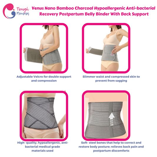 SLIGHTLY/STAINED DAMAGE ToughMomma Venus Nano Bamboo Charcoal Recovery Postpartum Belly Binder With Back Support